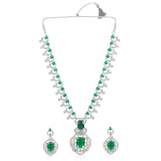 Nita Ambani inspired Green Zirconium Faux Diamond Necklace Set Silver Necklace Set Necklace Set cz zircon wedding jewelry Royal look