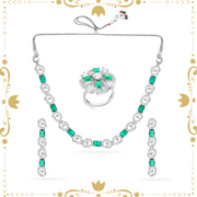 Elevate your style with the Emerald Elegance Combo. This beautiful set includes a classic flower-shaped emerald green ring and a dazzling silver gleam necklace. Perfect for festive occasions, weddings, or as a thoughtful gift, this elegant duo is des...